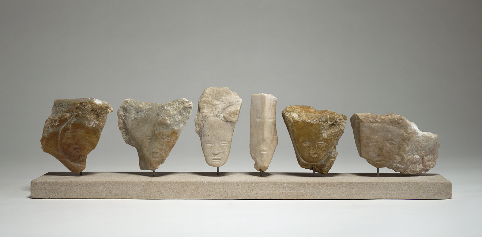 nine sculptures in twenty-six groupings. Through the ancient act of carving